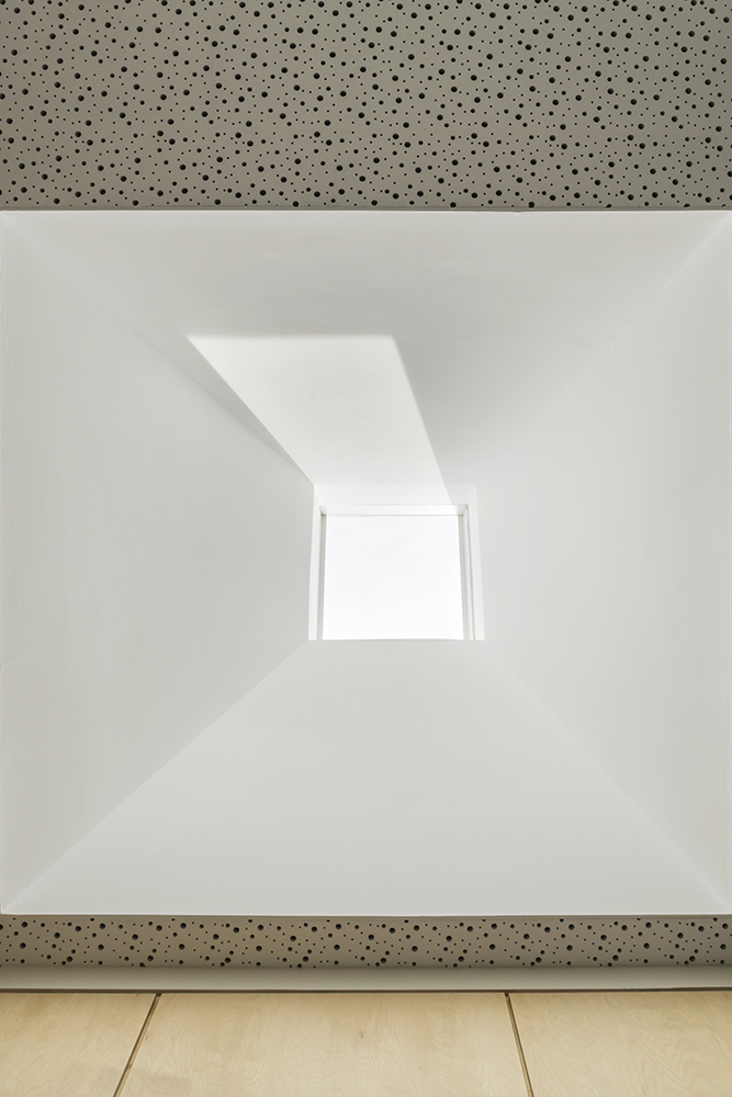 Three funnels add character and a vertical element to the new office, whilst dealing with key technical issues such as providing additional daylight and adequate fresh air as part of a carefully worked through natural ventilation strategy, facilitated by the client’s own actuators. The existing accommodation was fully refurbished to provide a new, light filled staff breakout area, WC accommodation and a new staff room upstairs.
