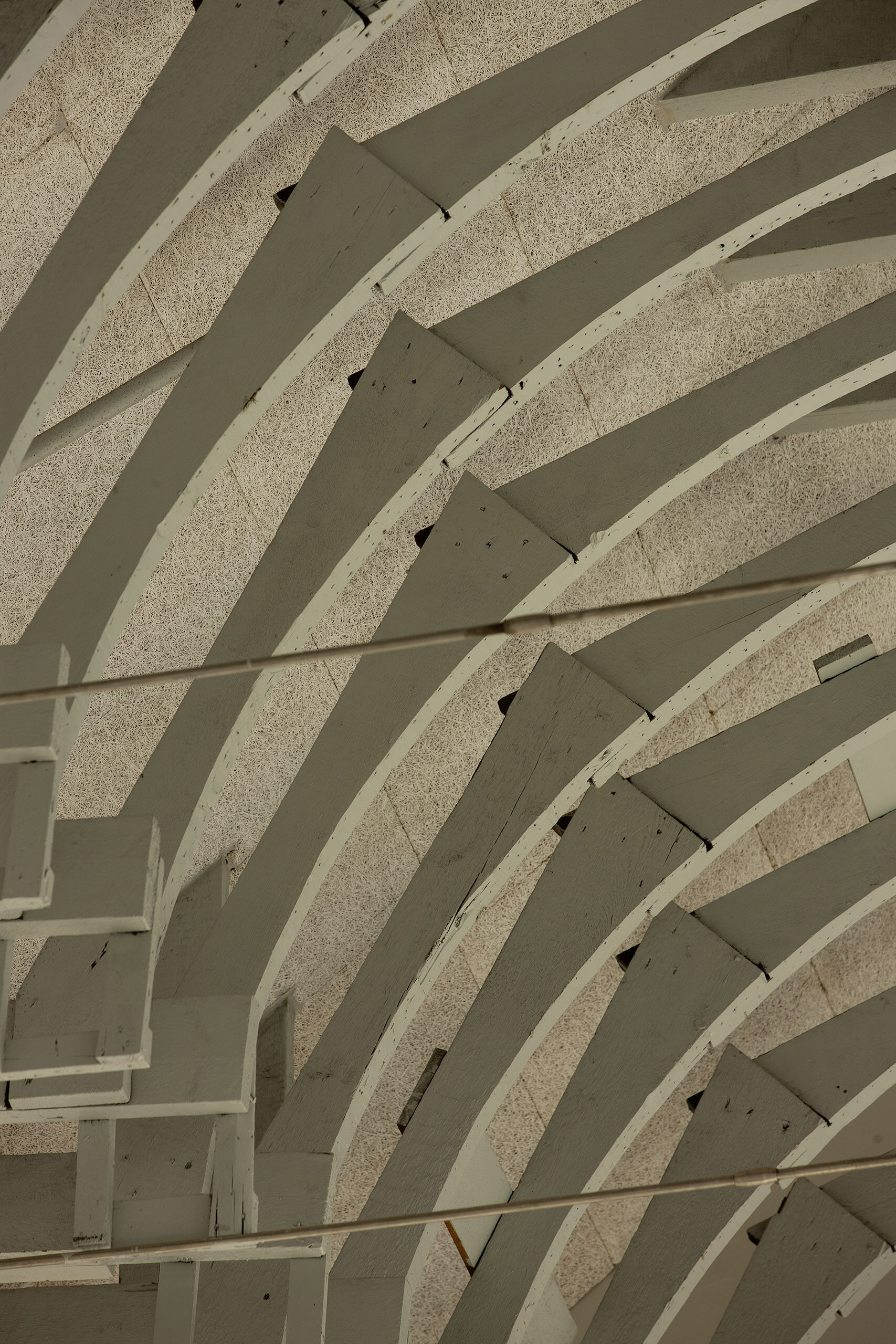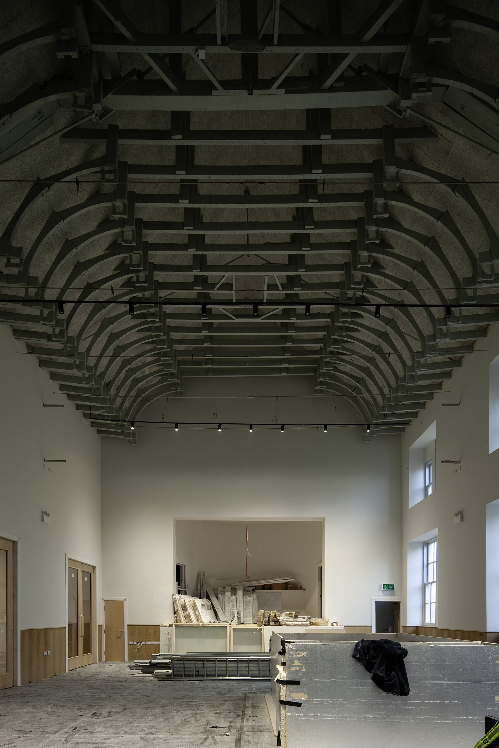 The original ceiling structure is exposed in the main hall.