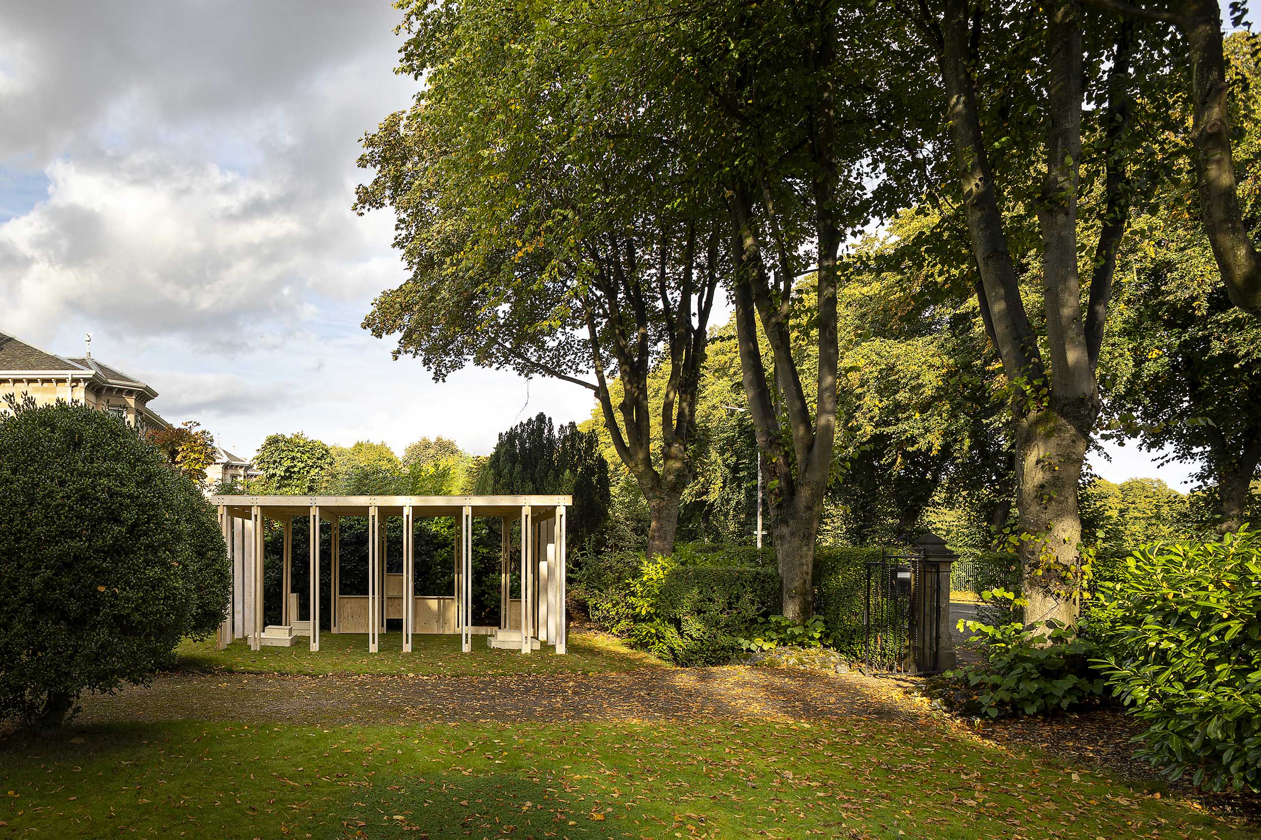 Since the initial research prototype, we have since been invited to create additional pavilions for outdoor learning and play; collaborating with artist, Kate V Robertson on a structure at Strathclyde Country Park, delivering a Community Classroom at Calton Hill, Edinburgh for the Collective Gallery and outdoor learning spaces for the Edinburgh University campus. As with all iterations of the pavilion, the flexible modules can be reconfigured, enabling the space to perform a range of functions from storage, shelving, a bar or exhibition space.