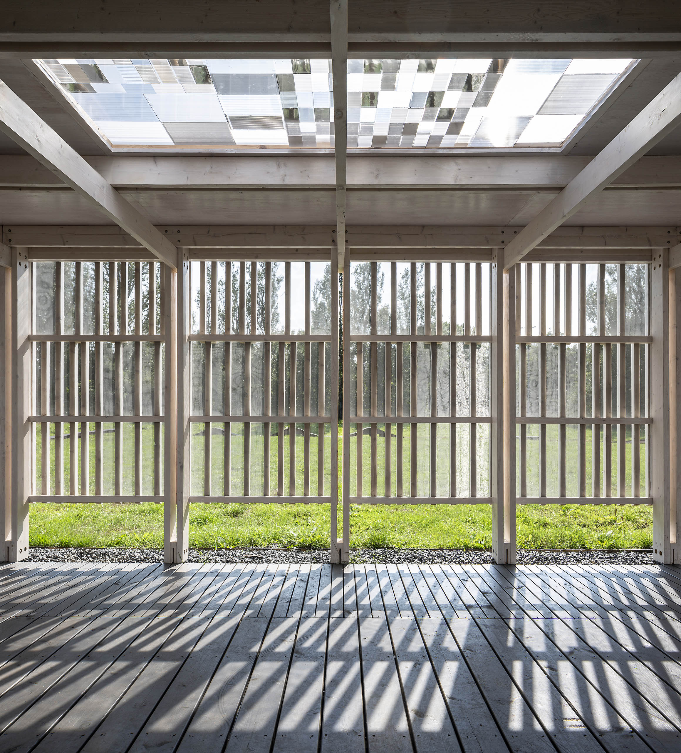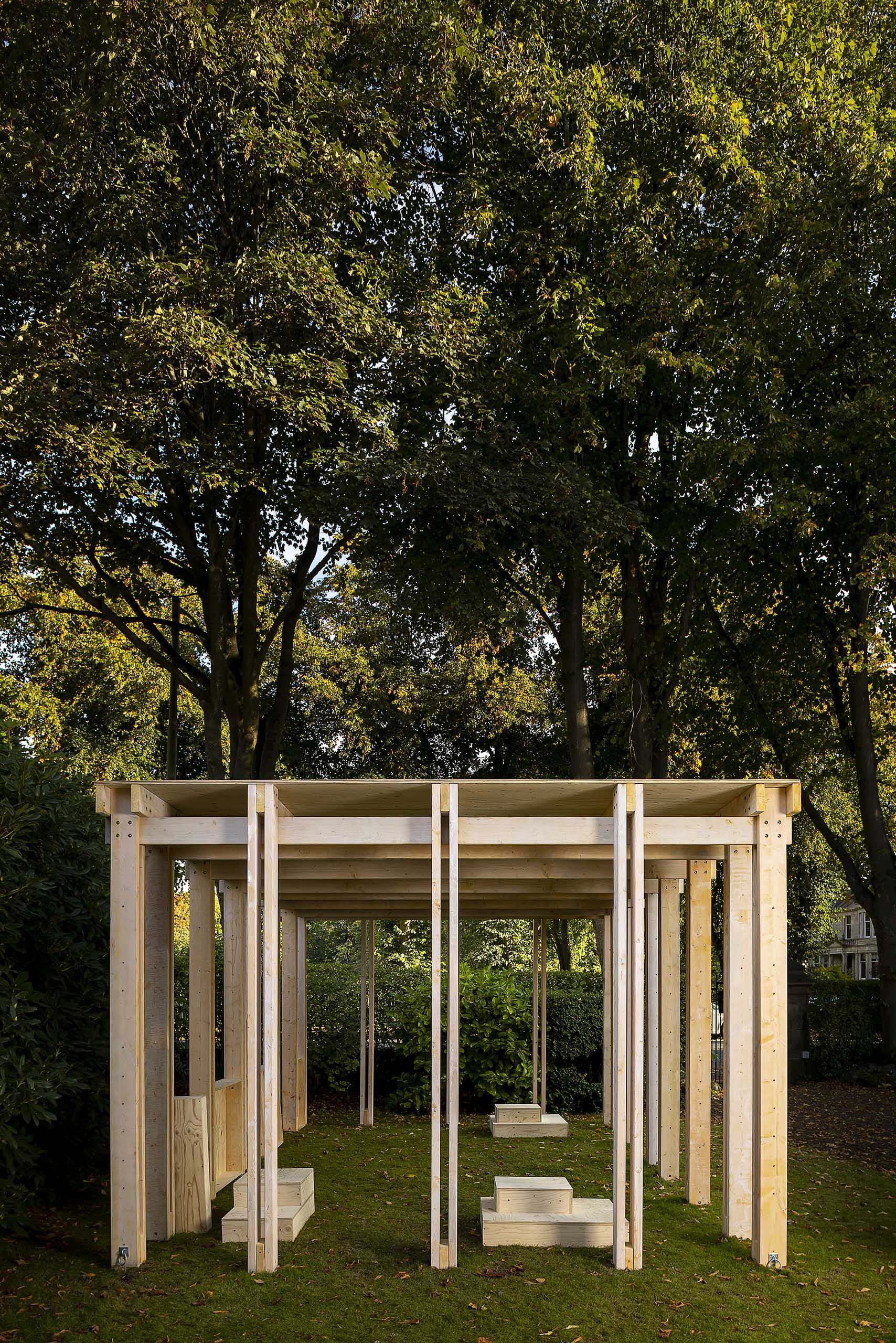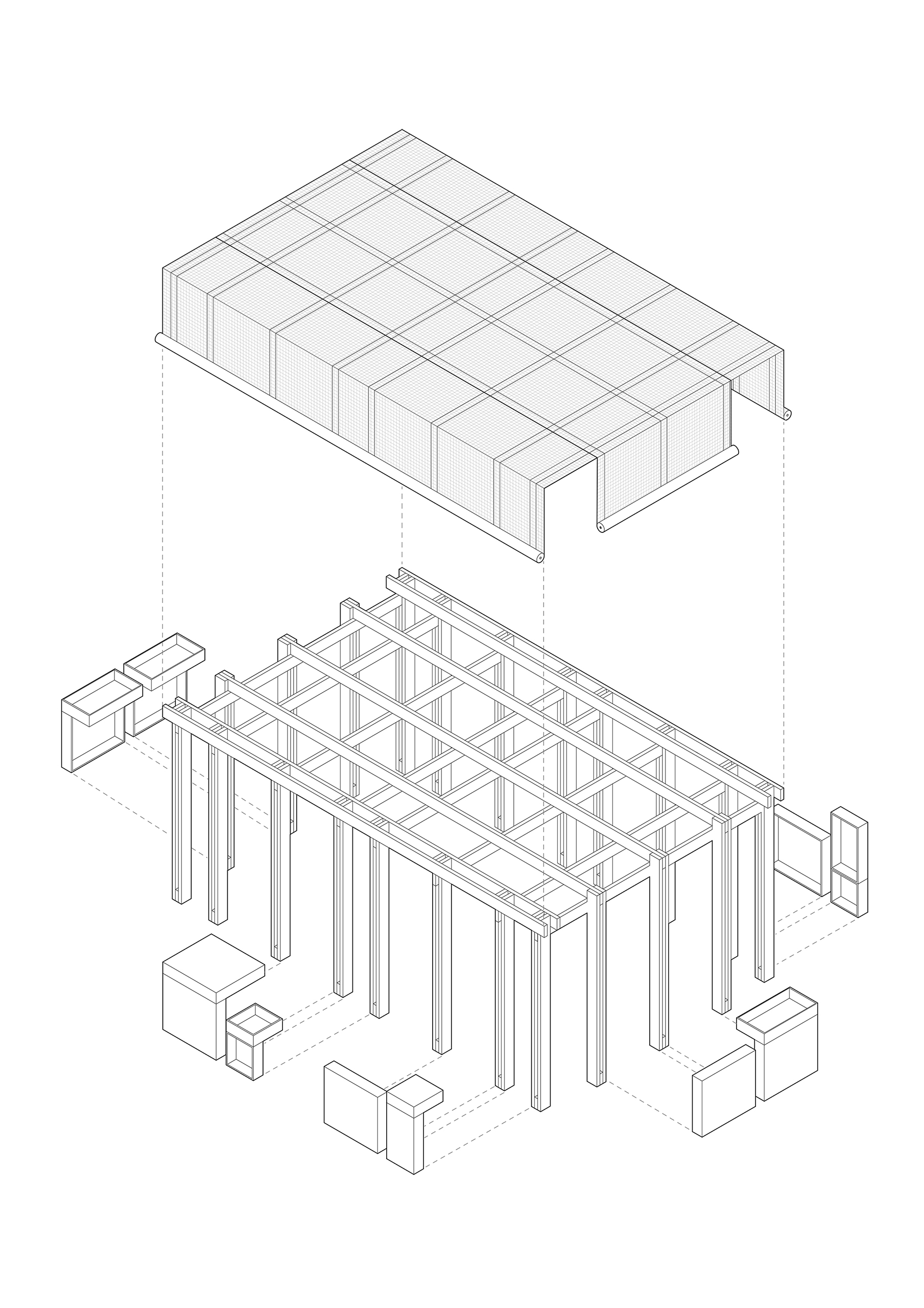 Composed as a simple timber structure, the space is an adaptable, demountable outdoor learning environment for schools and community groups which employs a functional, rhythmic geometry and design. Standard structural timber sizes provide a skeletal frame, forming the basis for plywood modules to be placed and reconfigured to suit a diverse variety of activities and inhabitants. Simple, bolted connections, allow for ease of both construction and deconstruction and provide a cohesive language of connections throughout the structure and modules.