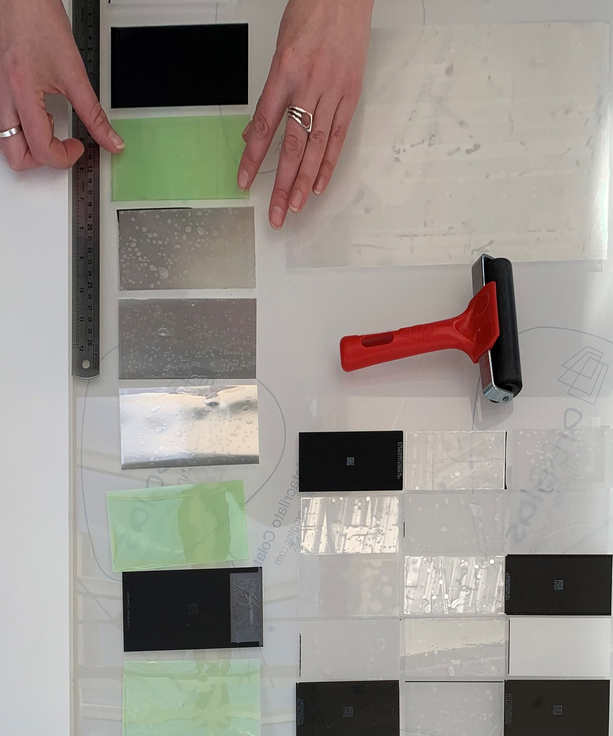 A large patchwork pattern, created from discarded digital devices, reflects and distorts the sunlight, creating rainbow prisms that bounce around the interior, brought to life by the movement of people using the space.