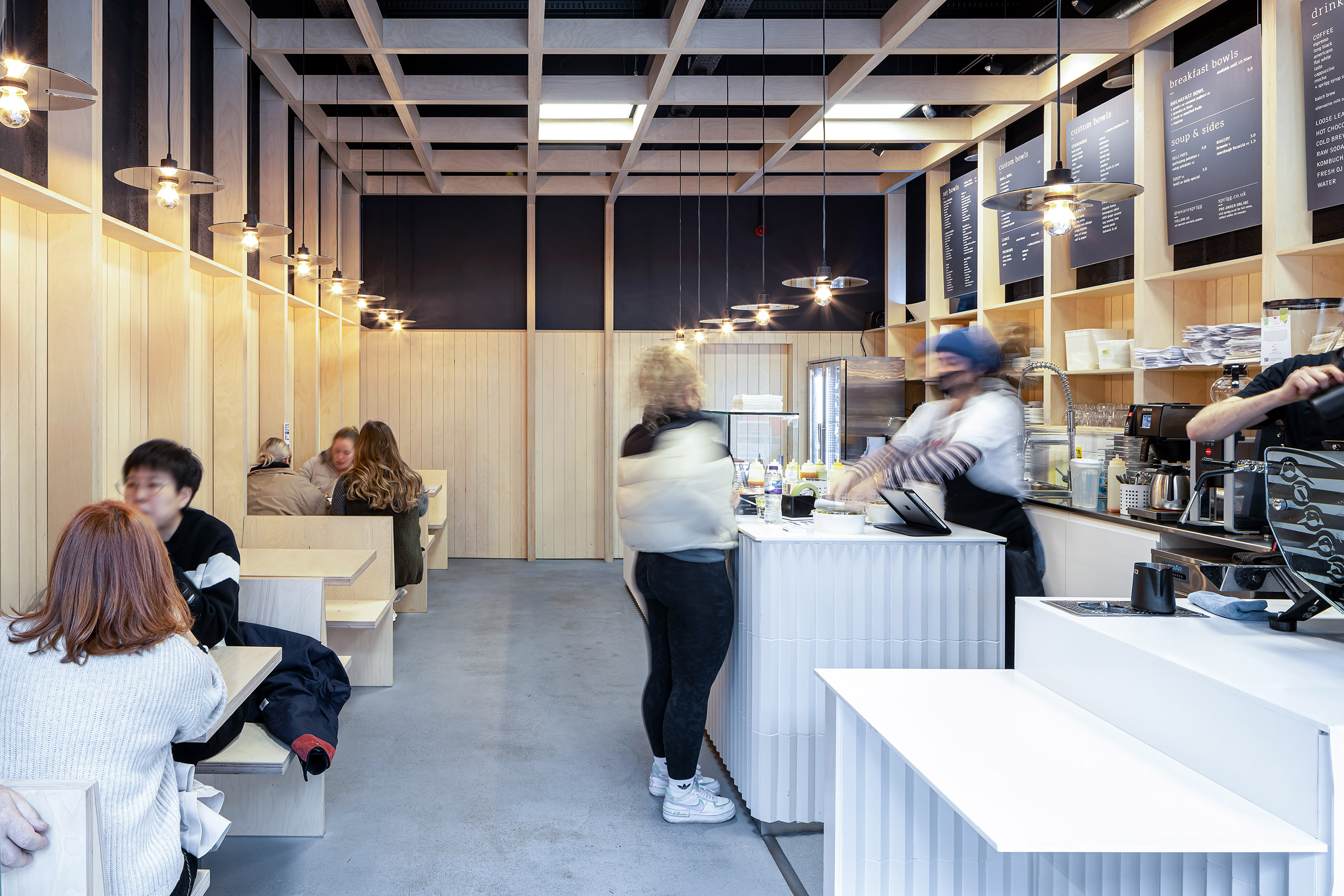 The rhythm and proportion of the surrounding 19th century classical architecture determined the spacing of the columns and height of the roof so that the structure sits contextually within Collective’s mix of historic and contemporary architecture. Its trabeated columned form enables easy access for a range of users.