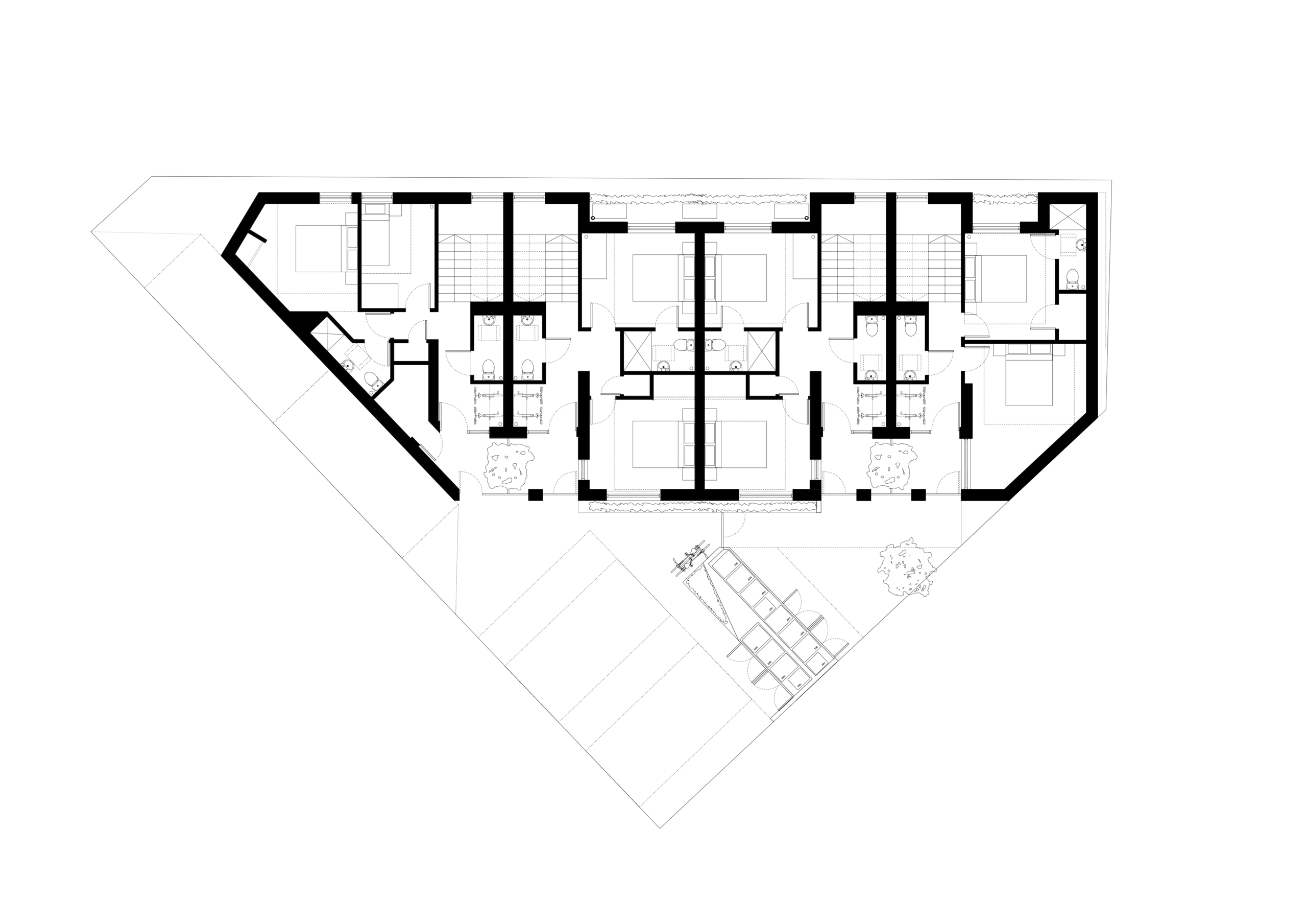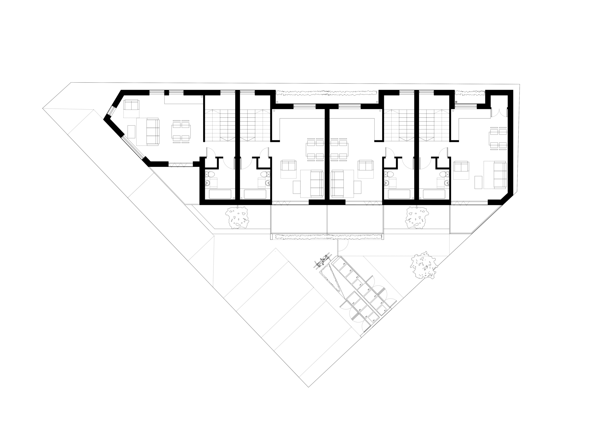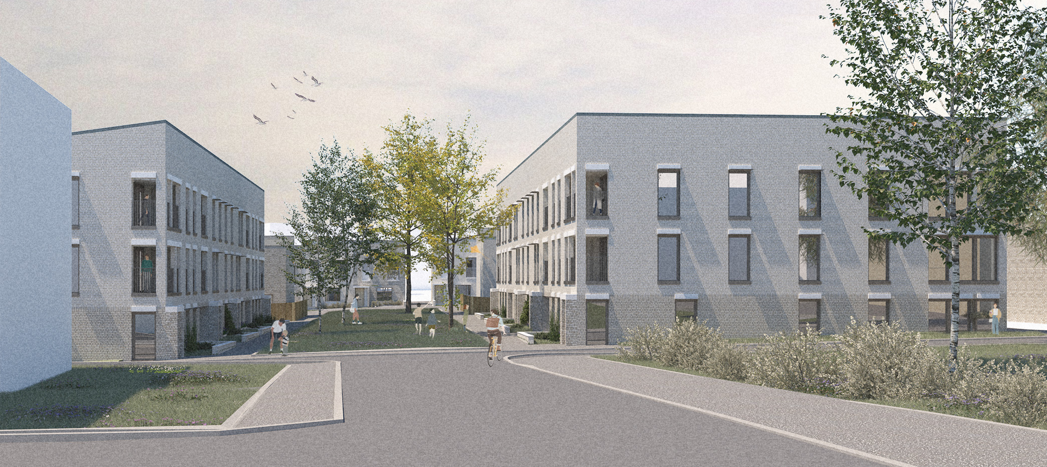 Overnewton Place is a contemporary residential development comprising four two-bedroom mews houses, located in the vibrant Kelvinhaugh area of Glasgow’s West End. Designed for Mitre Properties, the project transforms a long-vacant brownfield site into high-quality, sustainable homes that respond sensitively to their urban context. Positioned just a mile west of Glasgow city centre and adjacent to key landmarks such as Kelvingrove Park and Glasgow University, the site benefits from excellent connectivity and proximity to the emerging Yorkhill and Kelvingrove Cycling Village. The development incorporates sustainable transport features including secure bike storage, wash-down areas, and a communal repair station. Each home is dual aspect and arranged around a shared south-facing garden with private entrance courtyards and upper-level terraces. A simple but refined palette of materials—primarily clay brick and architectural metalwork—reflects the area's historical industrial character and complements the adjacent tenement and student housing blocks.