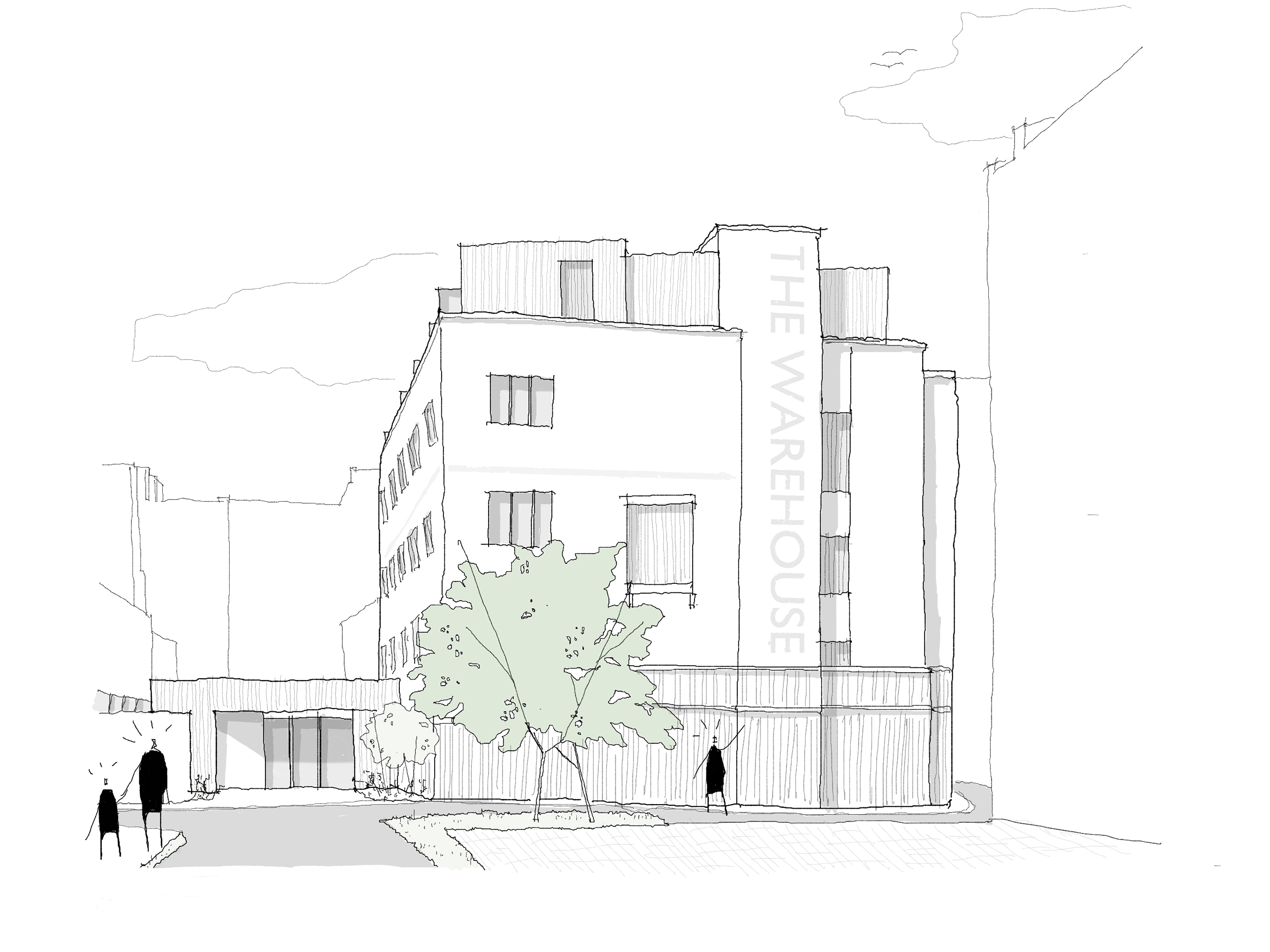 The Warehouse, located on Water Street in Leith, looks to retrofit an existing mid-century, red brick industrial warehouse, with a design proposal consisting of a ‘folded’ lightweight metal roof extension, following the example of the 1961 extension, and a brick courtyard extension. As part of our design, we have introduced a landscaped courtyard, reimagining the existing yard space into an urban garden within the city, softening the transition between street and internal space.